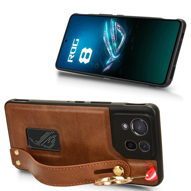 For Asus ROG Phone 8 Wristband Leather Back Phone Case(Brown)