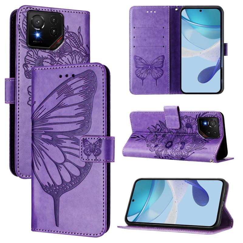 For Asus ROG Phone 9 / 9 Pro Embossed Butterfly Leather Phone Case(Purple)