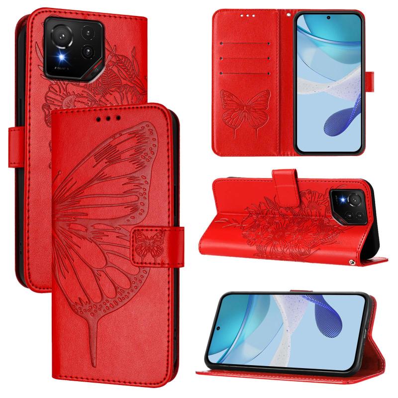 For Asus ROG Phone 9 / 9 Pro Embossed Butterfly Leather Phone Case(Red)