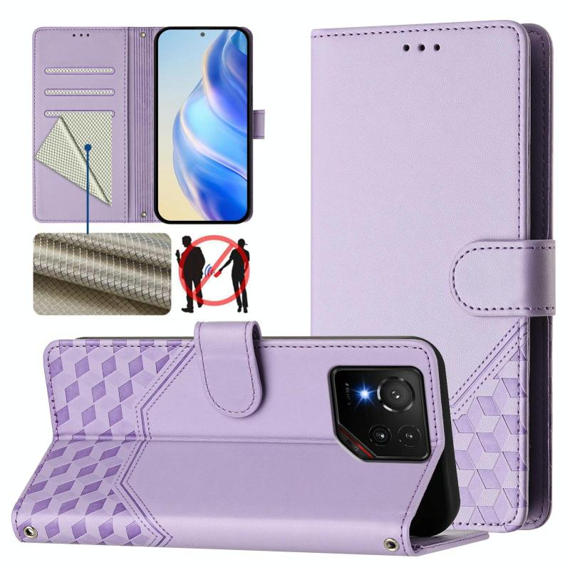 For Asus ROG Phone 9 / 9 Pro Honeycomb Embossing RFID Leather Phone Case(Light Purple)