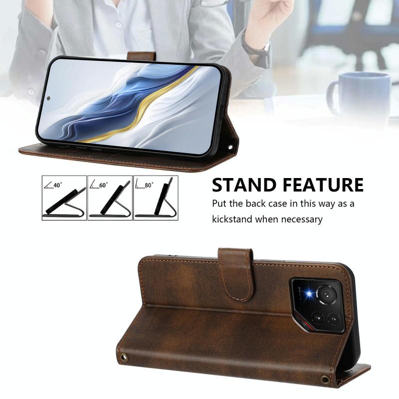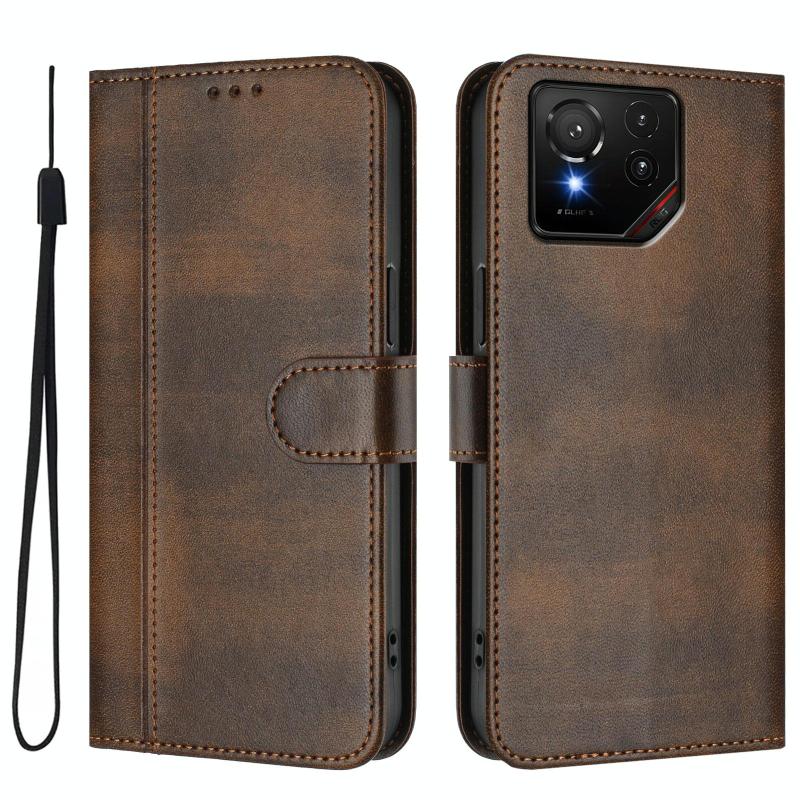 For ASUS ROG Phone 9 / 9 Pro Line Splicing Buckle Retro Leather Phone Case(Brown)