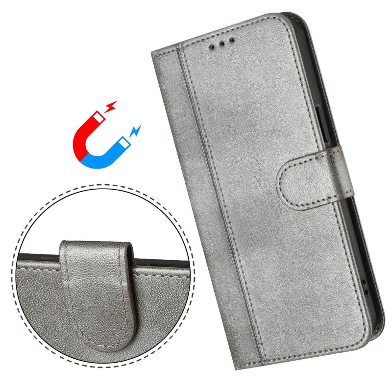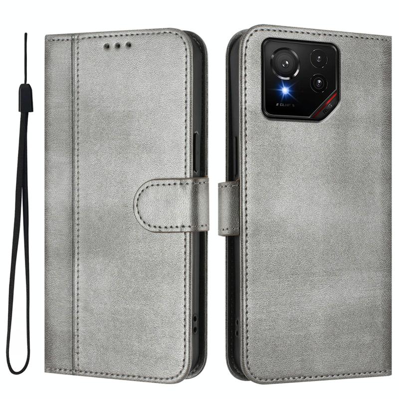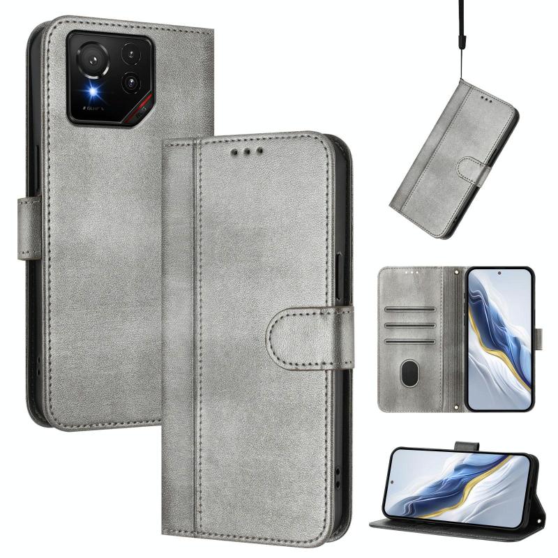 For ASUS ROG Phone 9 / 9 Pro Line Splicing Buckle Retro Leather Phone Case(Grey)