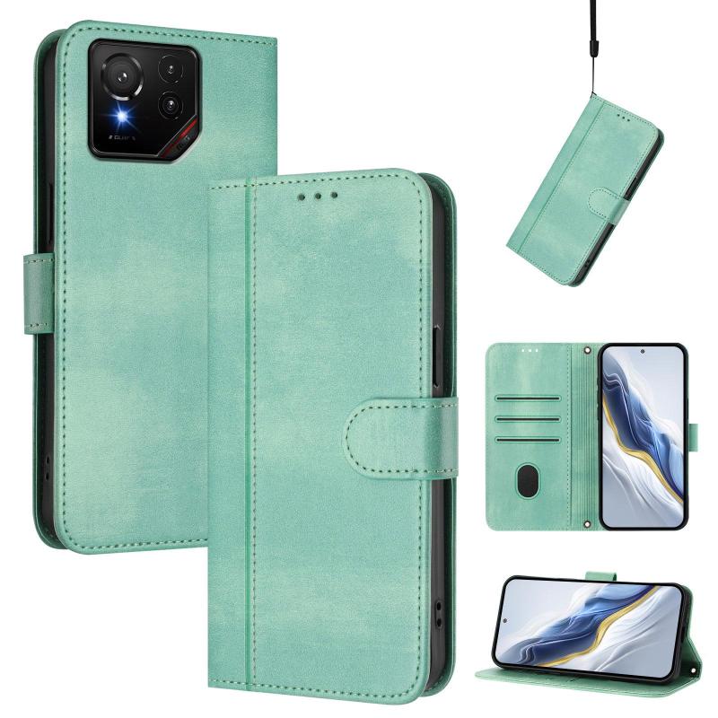 For ASUS ROG Phone 9 / 9 Pro Line Splicing Buckle Retro Leather Phone Case(Mint Green)