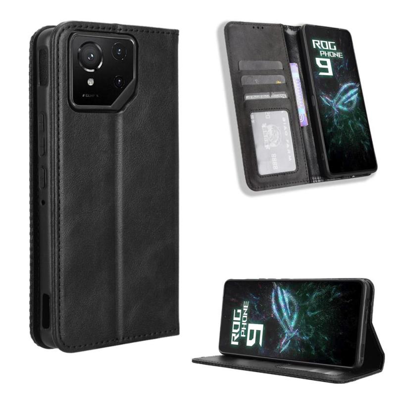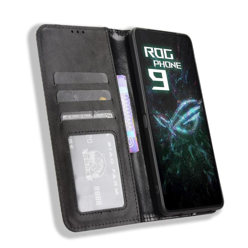 For ASUS ROG Phone 9 / 9 Pro Magnetic Buckle Retro Texture Leather Phone Case(Black)