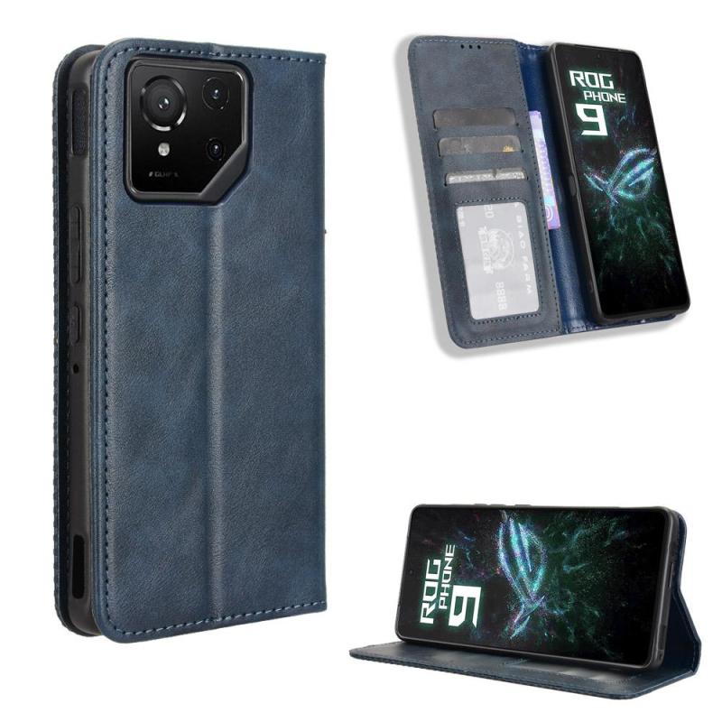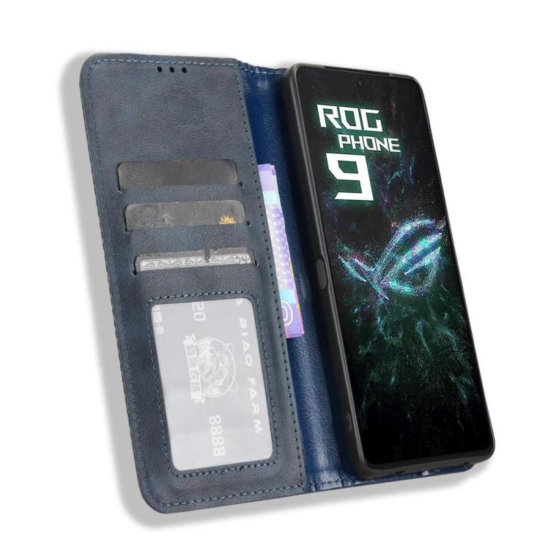 For ASUS ROG Phone 9 / 9 Pro Magnetic Buckle Retro Texture Leather Phone Case(Blue)