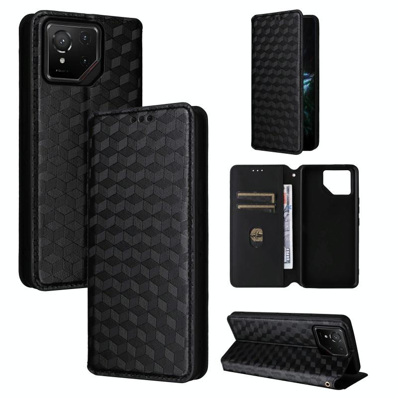 For Asus ROG Phone 9 / ROG Phone 9 Pro Cubic Grid Texture Flip Leather Phone Case(Black)