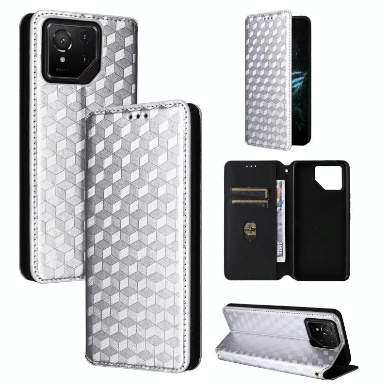 For Asus ROG Phone 9 / ROG Phone 9 Pro Cubic Grid Texture Flip Leather Phone Case(Silver)