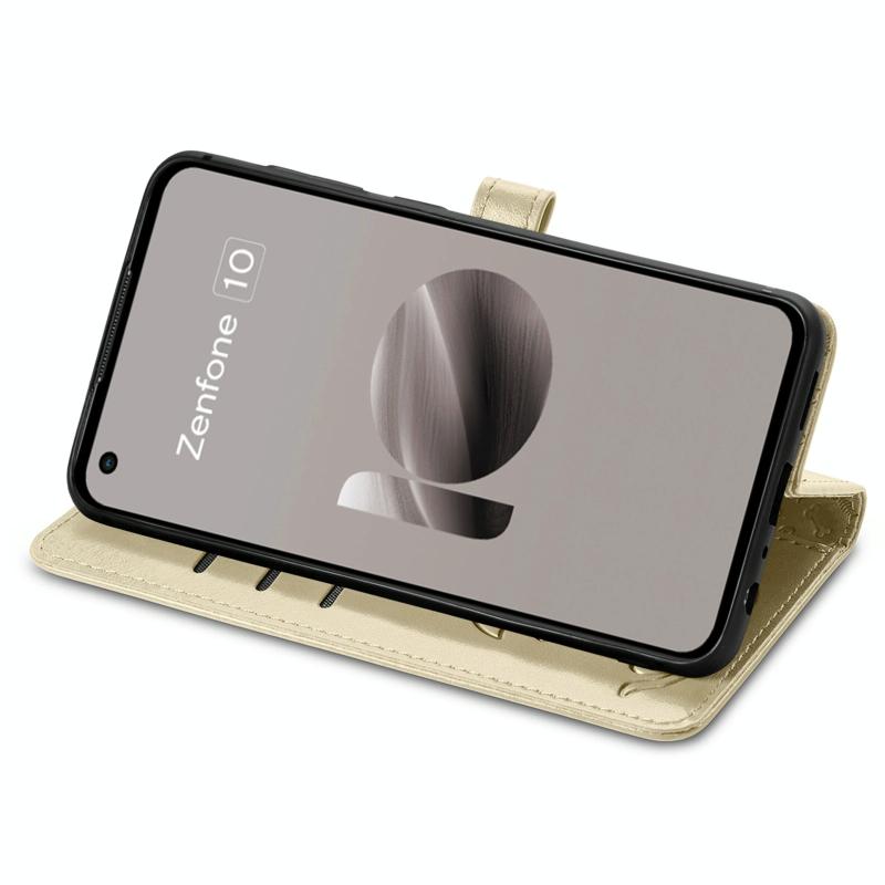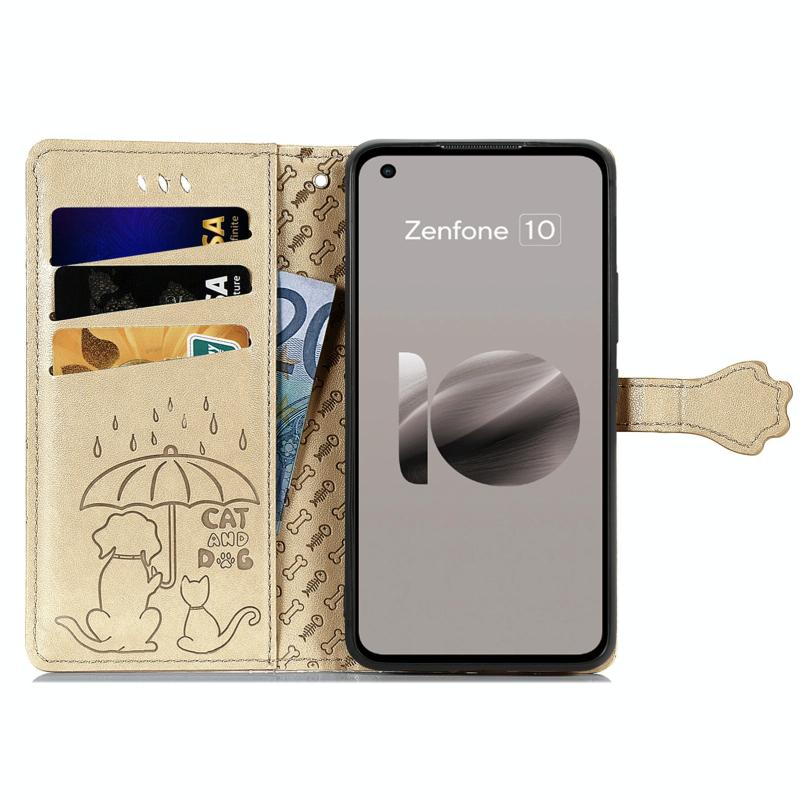 For ASUS Zenfone 10 Cat and Dog Embossed Leather Phone Case(Gold)