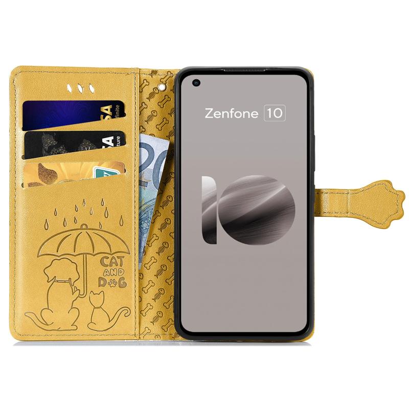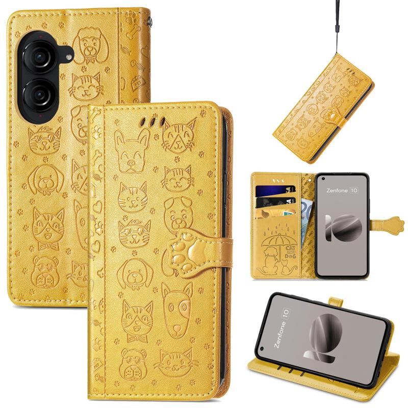 For ASUS Zenfone 10 Cat and Dog Embossed Leather Phone Case(Yellow)