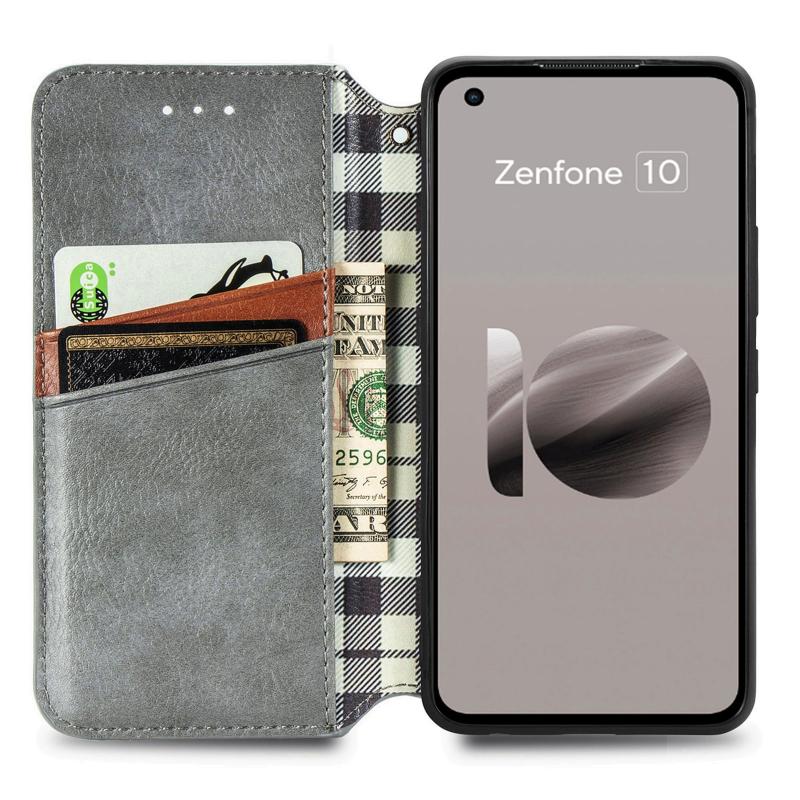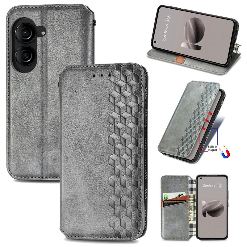 For ASUS Zenfone 10 Cubic Grid Pressed Magnetic Leather Phone Case(Grey)