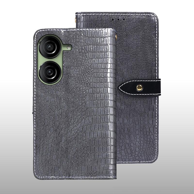 For Asus Zenfone 10 idewei Crocodile Texture Leather Phone Case(Grey) (idewei)