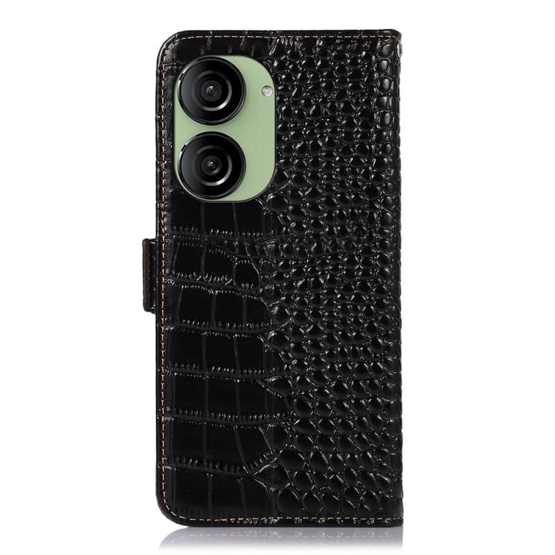 For Asus ZenFone 10 / ZenFone 9 Crocodile Top Layer Cowhide Leather Phone Case(Black)