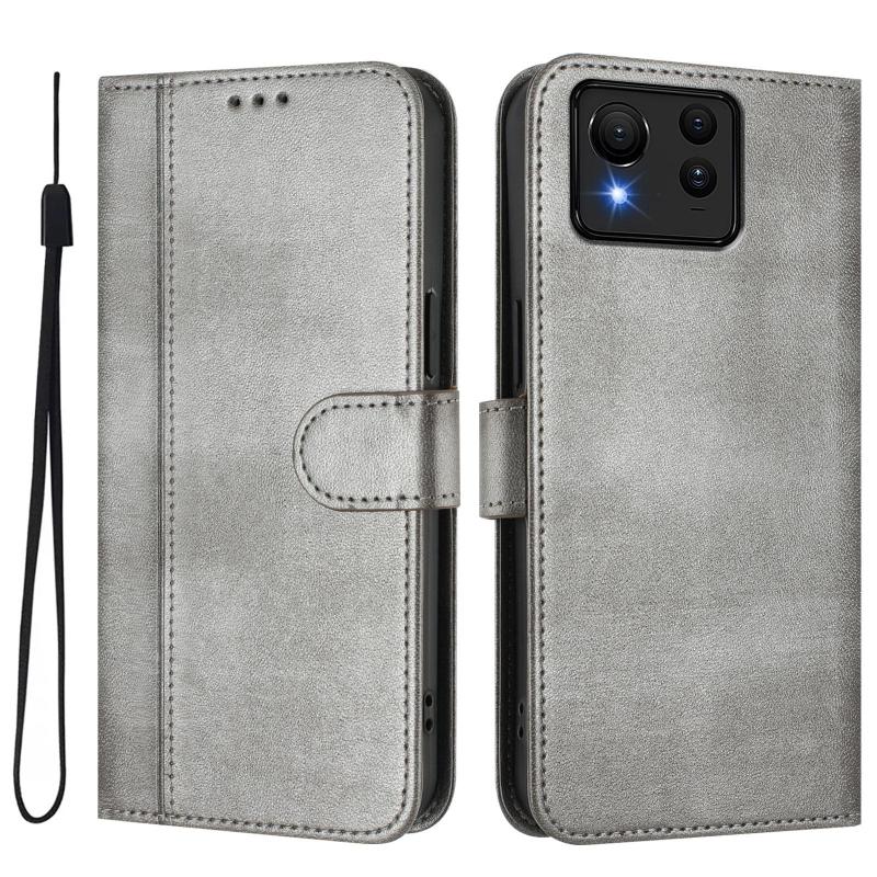 For ASUS Zenfone 11 Ultra Line Splicing Buckle Retro Leather Phone Case(Grey)