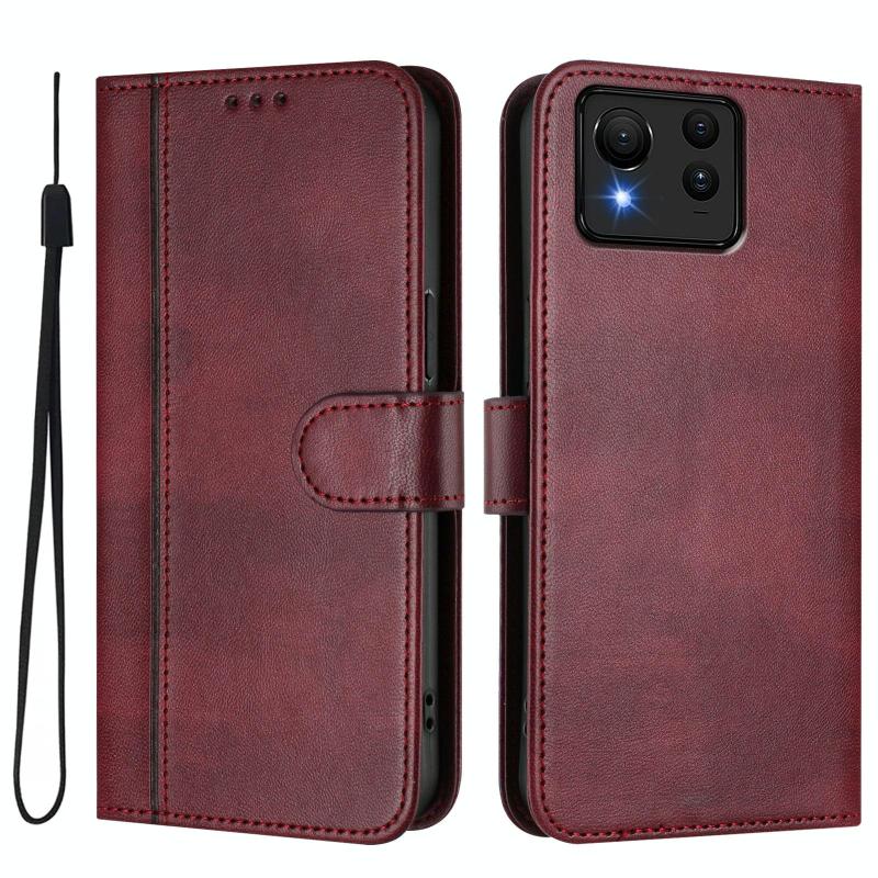 For ASUS Zenfone 11 Ultra Line Splicing Buckle Retro Leather Phone Case(Wine Red)