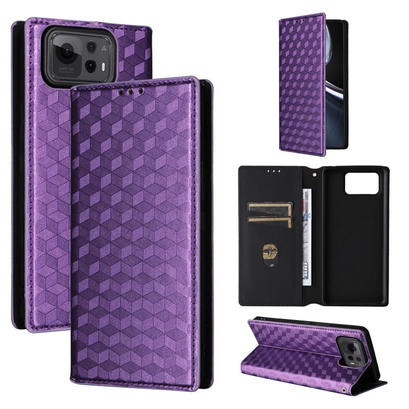 For Asus Zenfone 12 Ultra Cubic Grid Texture Flip Leather Phone Case(Purple)
