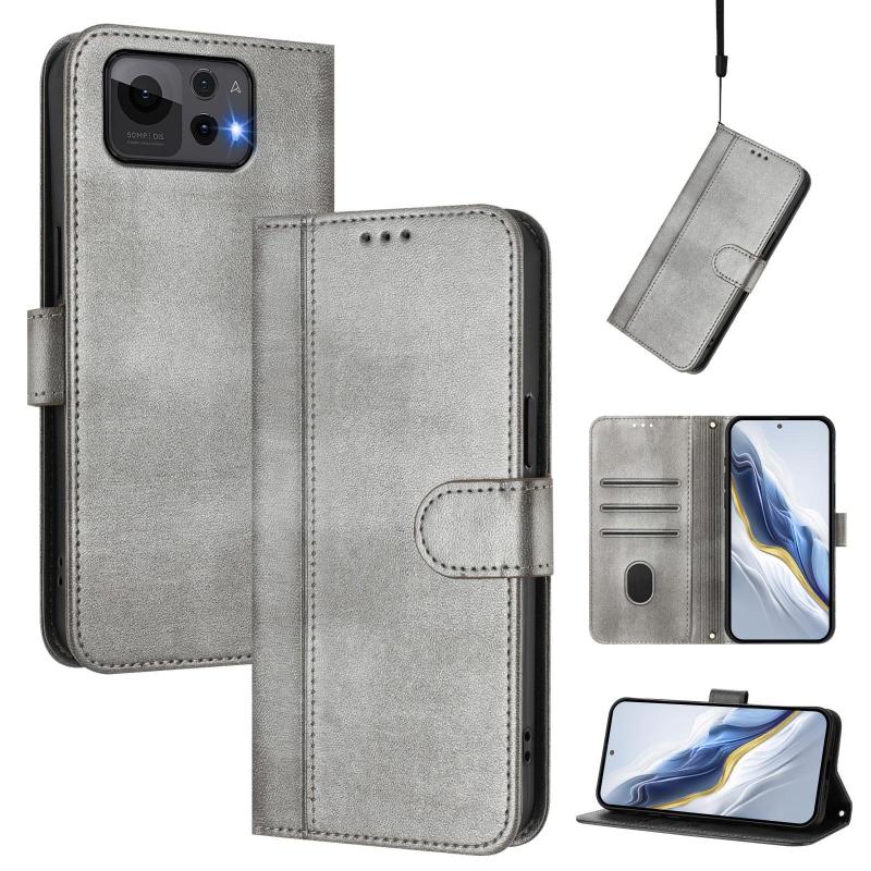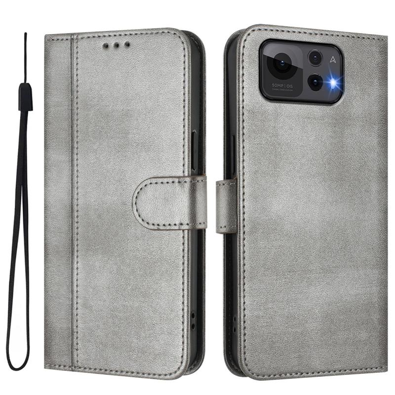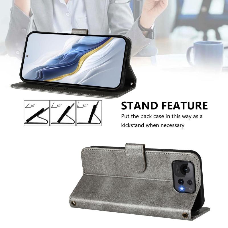 For ASUS Zenfone 12 Ultra Line Splicing Buckle Retro Leather Phone Case(Grey)