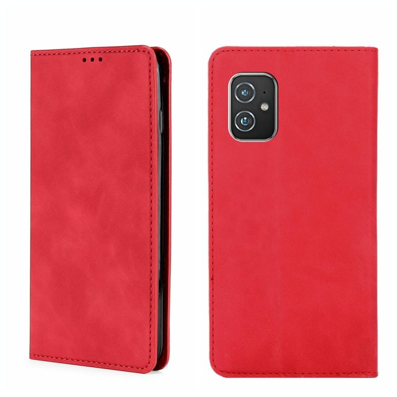 For Asus Zenfone 8 Skin Feel Magnetic Flip Leather Phone Case(Red)