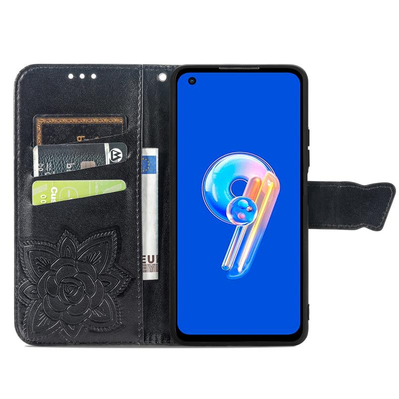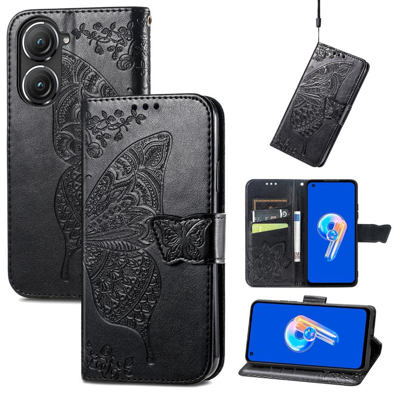 For Asus Zenfone 9 Butterfly Love Flower Embossed Leather Phone Case(Black)