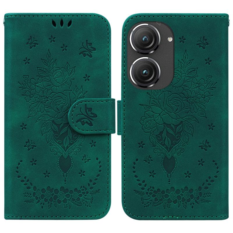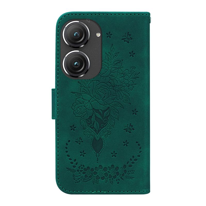For Asus Zenfone 9 Butterfly Rose Embossed Leather Phone Case(Green)