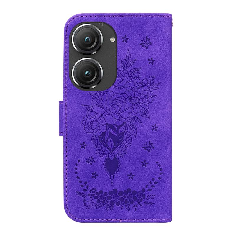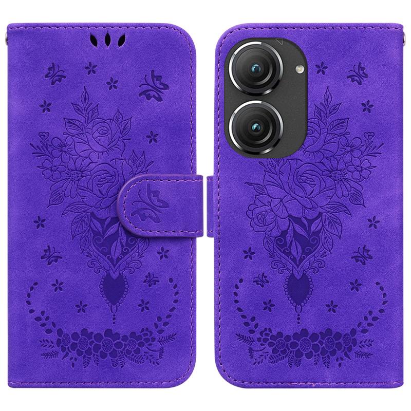 For Asus Zenfone 9 Butterfly Rose Embossed Leather Phone Case(Purple)