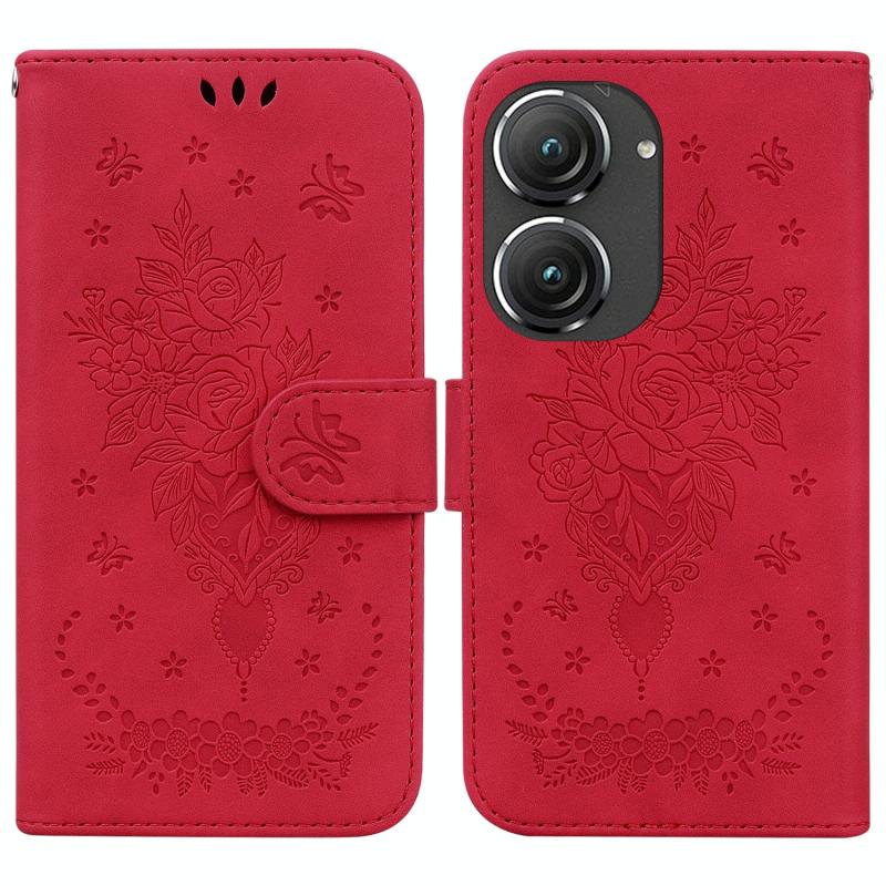 For Asus Zenfone 9 Butterfly Rose Embossed Leather Phone Case(Red)