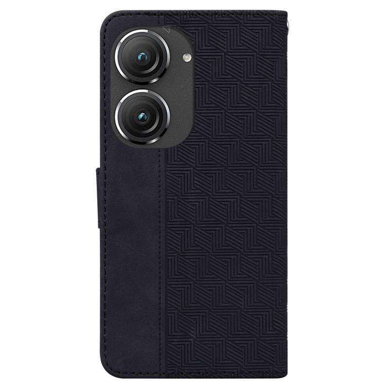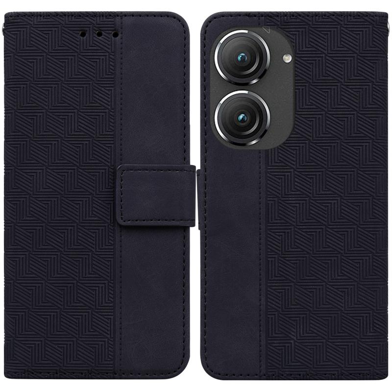 For Asus Zenfone 9 Geometric Embossed Flip Leather Phone Case(Black)