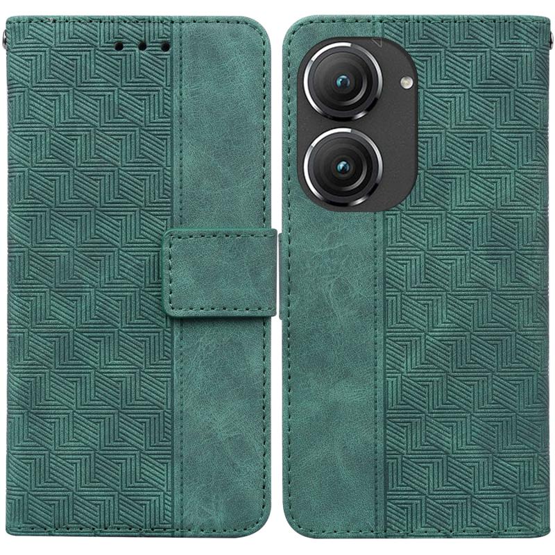 For Asus Zenfone 9 Geometric Embossed Flip Leather Phone Case(Green)