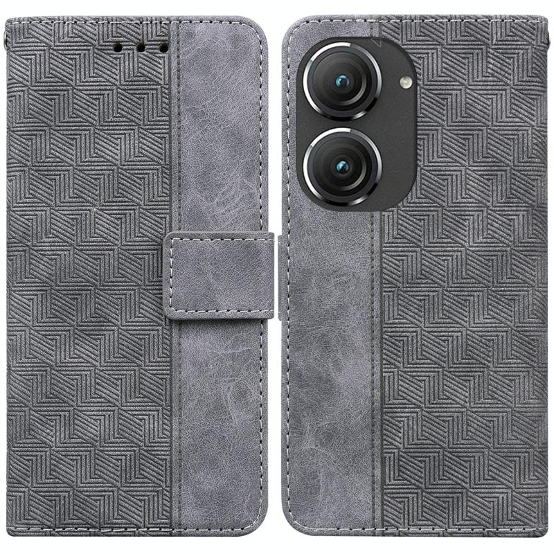 For Asus Zenfone 9 Geometric Embossed Flip Leather Phone Case(Grey)