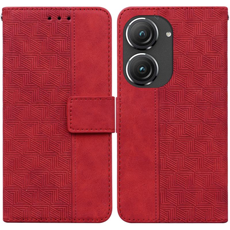 For Asus Zenfone 9 Geometric Embossed Flip Leather Phone Case(Red)