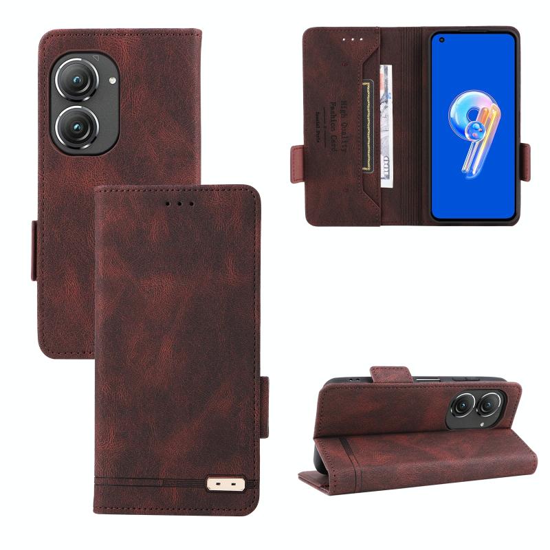 For Asus Zenfone 9 Magnetic Clasp Flip Leather Phone Case(Brown)