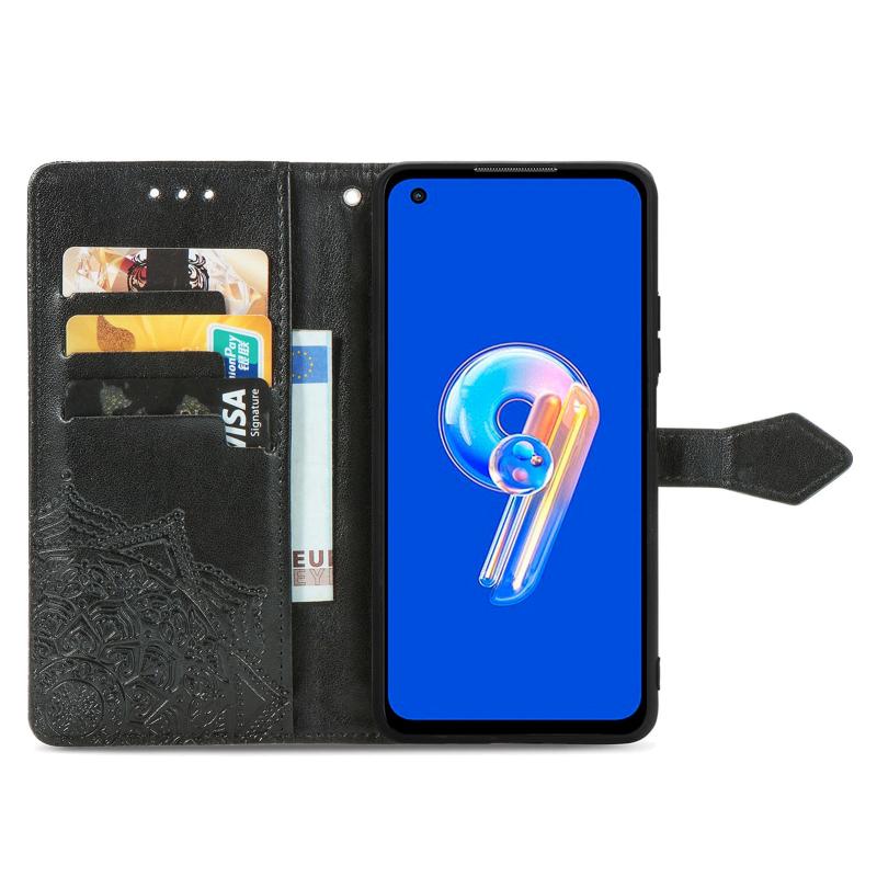 For Asus Zenfone 9 Mandala Flower Embossed Leather Phone Case(Black)