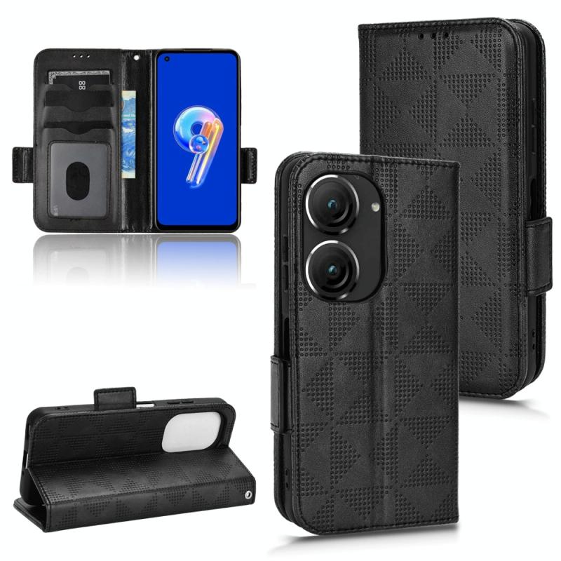 For Asus Zenfone 9 Symmetrical Triangle Leather Phone Case(Black)