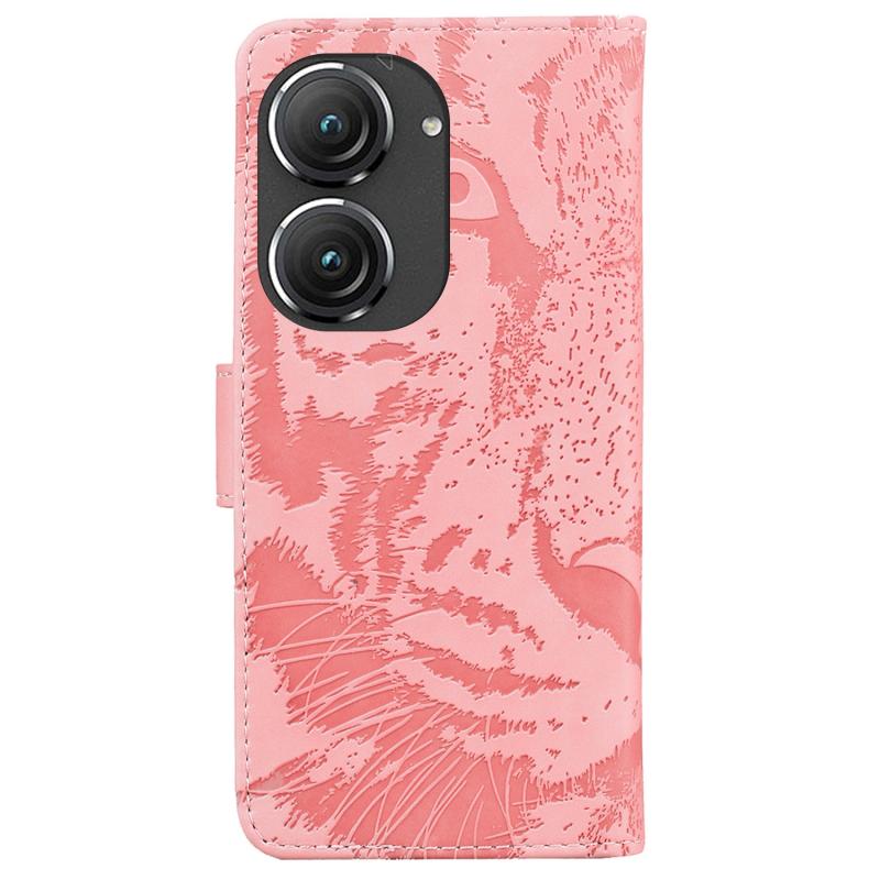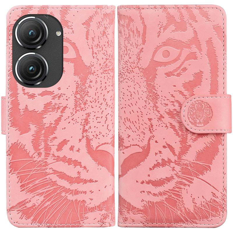 For Asus Zenfone 9 Tiger Embossing Pattern Flip Leather Phone Case(Pink)
