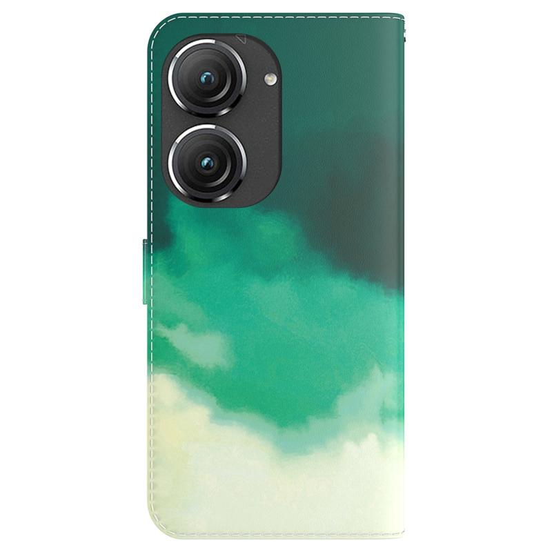For Asus Zenfone 9 Watercolor Pattern Flip Leather Phone Case(Cyan Green)