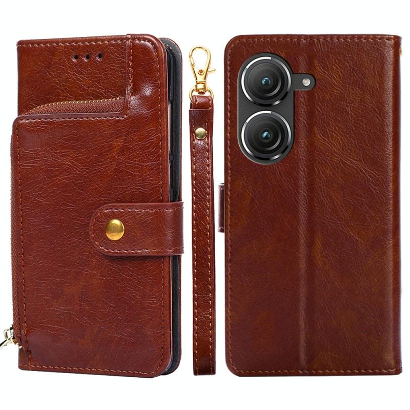 For Asus Zenfone 9 Zipper Bag Leather Phone Case(Brown)