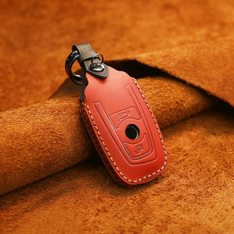 For BMW Old Style Car Cowhide Leather Key Protective Cover Key Case, Two Keys Version (Red)