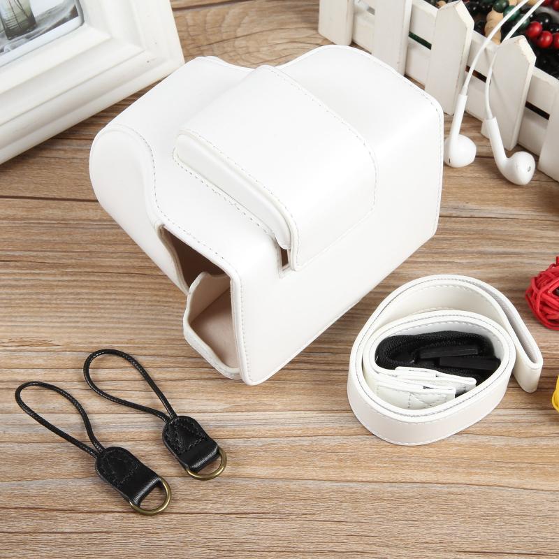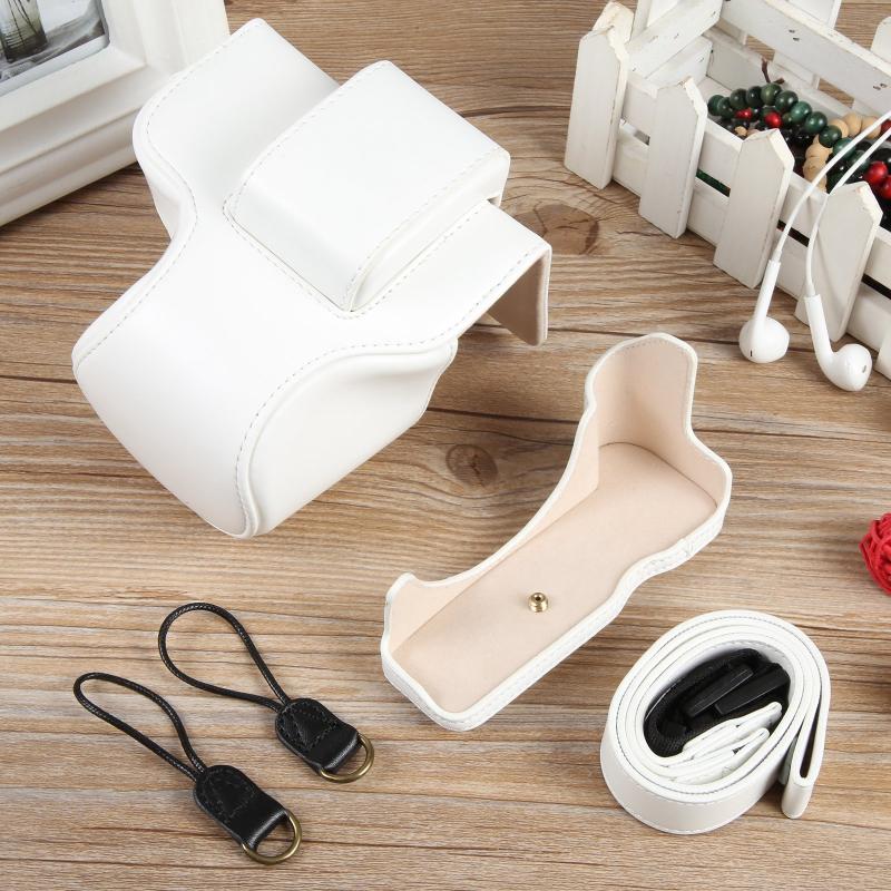 For Canon EOS R50 Full Body Magnetic Leather Camera Case Bag with Strap, Regular Edition(White)