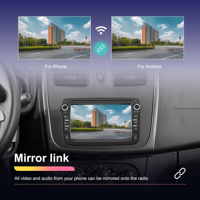 4. Mirror link: Wirelessly connect your smartphone to the device and mirror the phone screen to the device display. You can use your phone's applications, music, videos, etc. on the display.