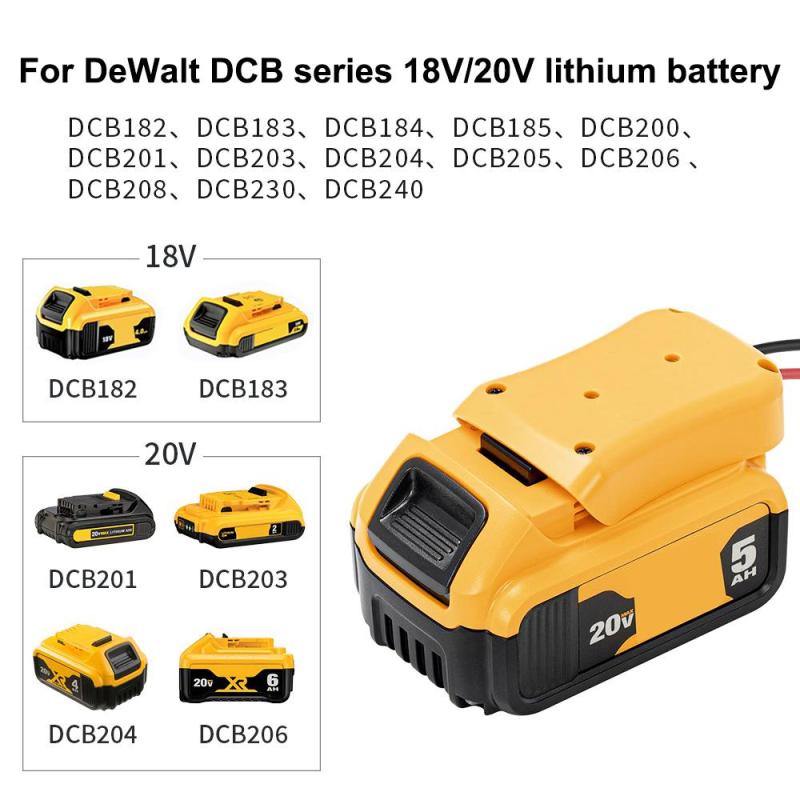 3. Working principle: This product is matched with DeWALT DCB Series 18V / 20V lithium-ion battery, and the battery power is taken out through two wires for other devices with the same voltage. It is a good helper for DIY players, such as electric toy modification, LED lights and other small electric devices.