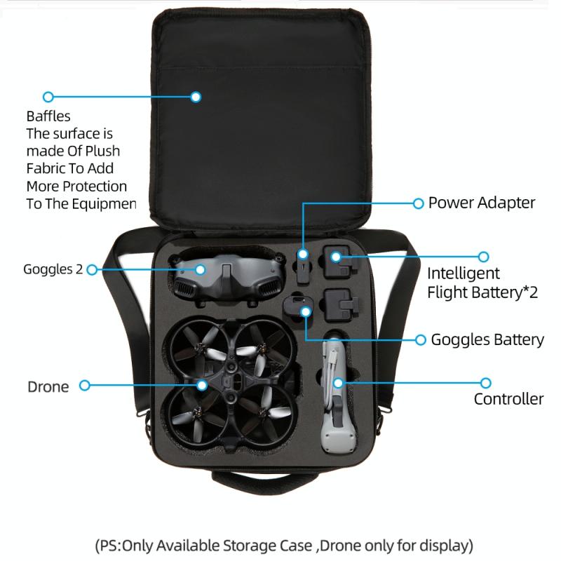 4. Compact size, but large space: Allows to store drone, goggles, remote controller, 3 batteries, charger, data cable, or some electronic devices.