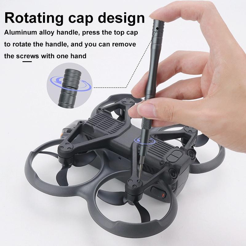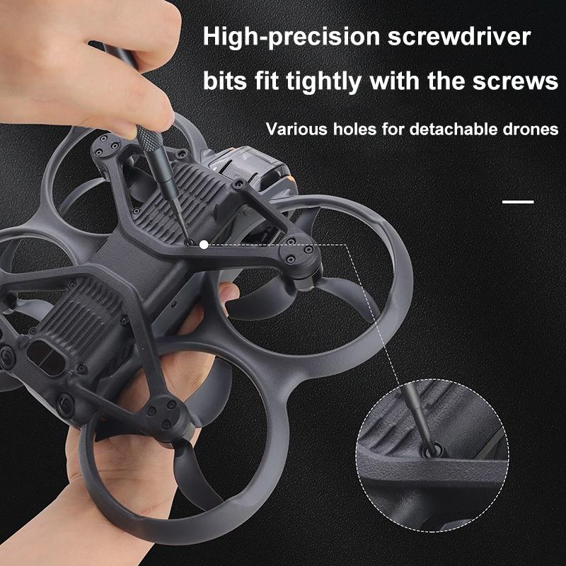 2. Made of aluminum alloy, the high-precision screwdriver bits fit tightly with the screws, and can be disassembled from various control positions of the drone, suitable for almost all drones
