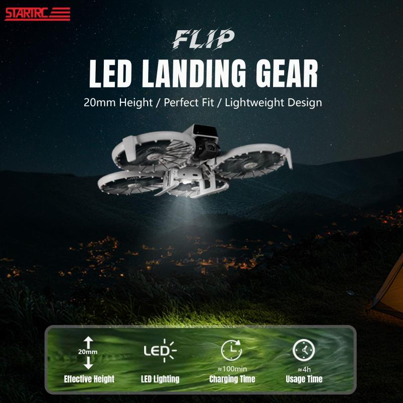 2. This luminous tripod is combined with the heightening tripod design, which can increase the distance between the bottom of Flip and the ground by 20 mm. It can reduce the impact force during landing and prevent ground debris or stains from dirtying or damaging the drone body, gimbal and propellers.