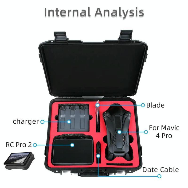 1. One-piece molded EVA lining for shockproof and compression resistance, with removable compartments to flexibly accommodate batteries/charging hub, RC Pro 2 remote controller (not compatible with RC 2), propellers, and other accessories.