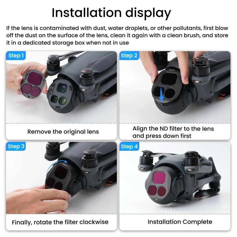 6. Note: If the lens is contaminated with dust, water droplets or other pollutants, blow off the dust on the surface of the lens first, clean it again with a clean brush, and put it in a special storage box when not in use