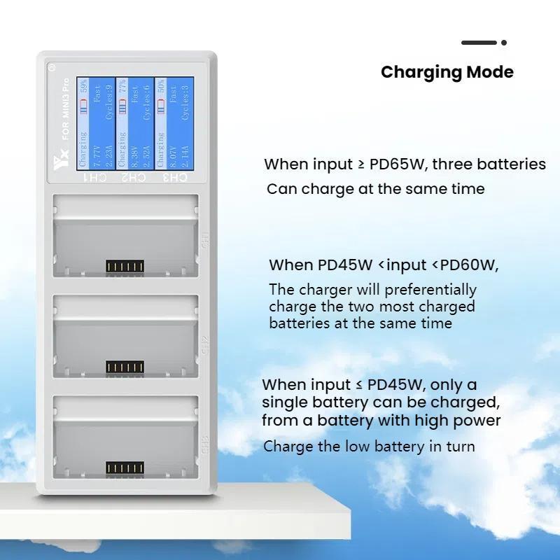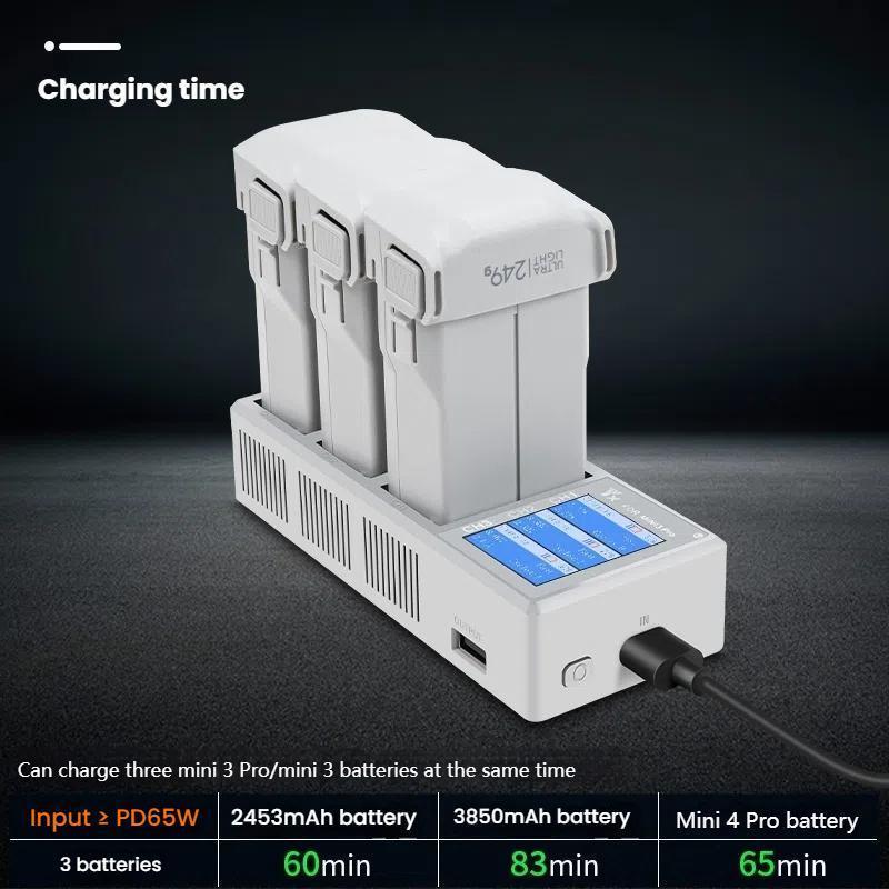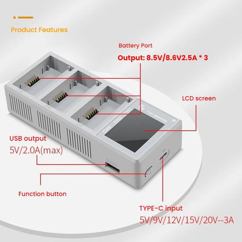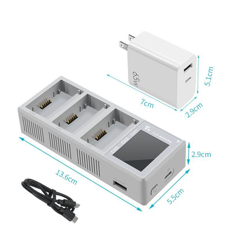 1. Suitable for DJI Mini 4 Pro/ Mini 3 / Mini 3 Pro three-way charger, supports PD and fast charging (the product only has a charger without a battery)