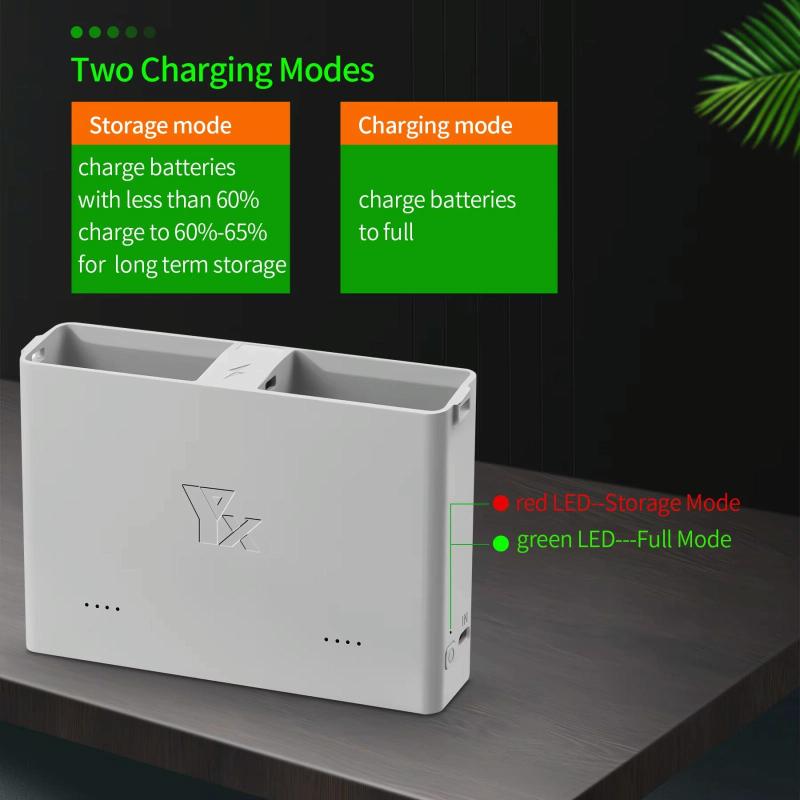 2. Two modes: Full charge mode quickly charges the battery; Storage mode charges the battery with a battery charge below 60% to about 60-65% for long-term storage, reducing the battery attenuation and swelling caused by the drone battery being empty or fully charged