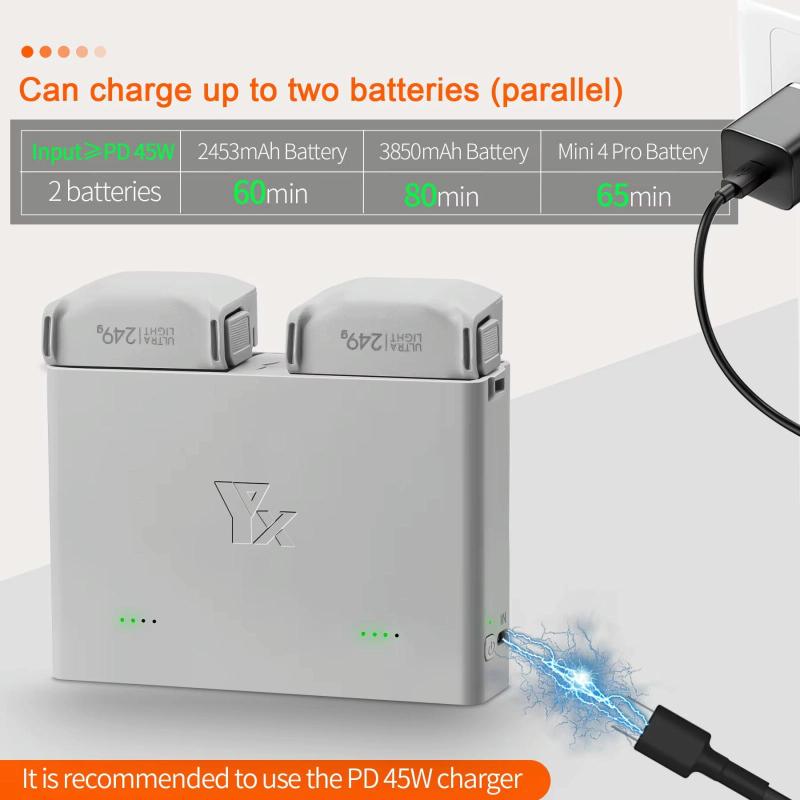 1. Suitable for DJI Mini 4 Pro/ Mini 3 / Mini 3 Pro batteries 2-way charger, supports PD fast charging (the product only has the charger but does not include the battery)
