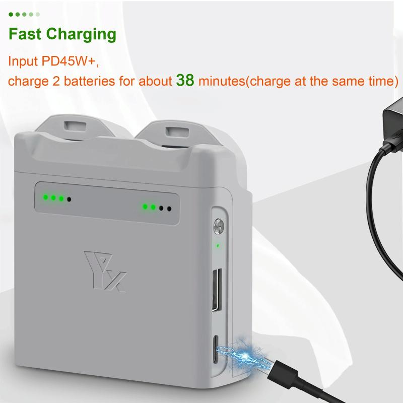 2. Multi-Battery Charging: Capable of charging 2 batteries simultaneously for efficient workflow.Two batteries can be fully charged simultaneously within about 38 minutes.