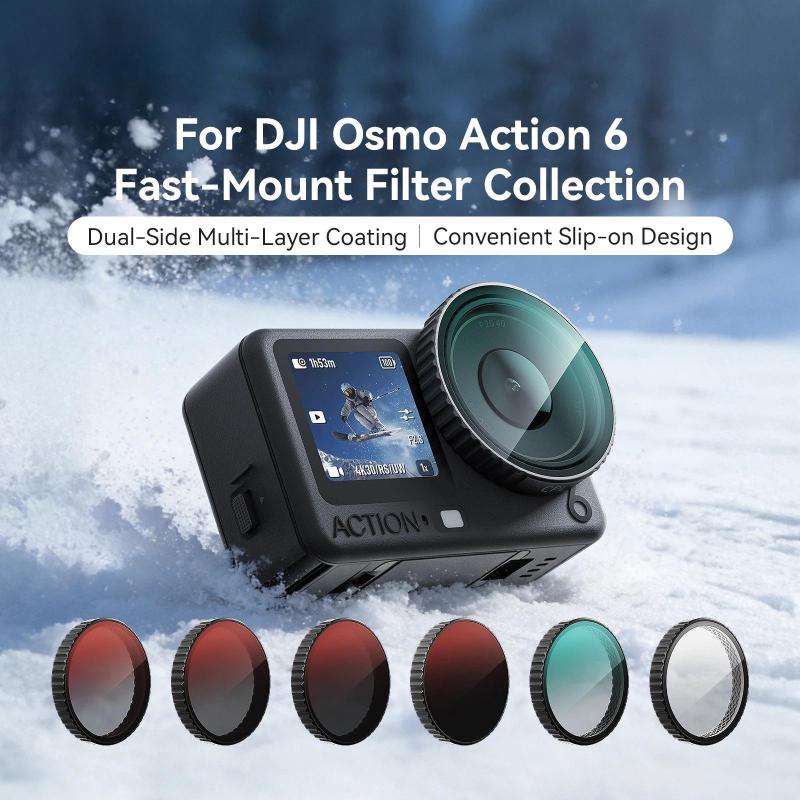 1. Designed exclusively for DJI Osmo Action 6, this quick-release filter can be directly mounted without removing the cameras protective lens, bringing you great convenience and efficiency in use.