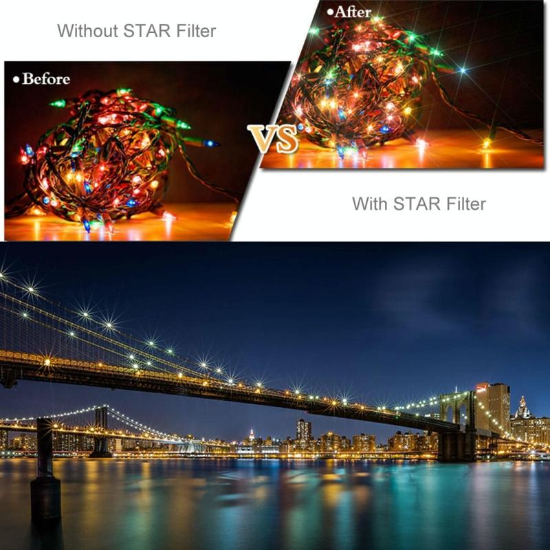 1. The starlight filter for DJI Pocket 3 is multi-layer coated, waterproof, scratch-proof, dust-proof, and oil-proof, protecting your gimbal lens from all-round damage. Starlight mirrors are usually used to shoot reflections of lights or objects in night scenes. When shooting, each light source point can emit a specific beam of light under the action of a point light source, giving the photo a dreamlike starlight artistic effect.